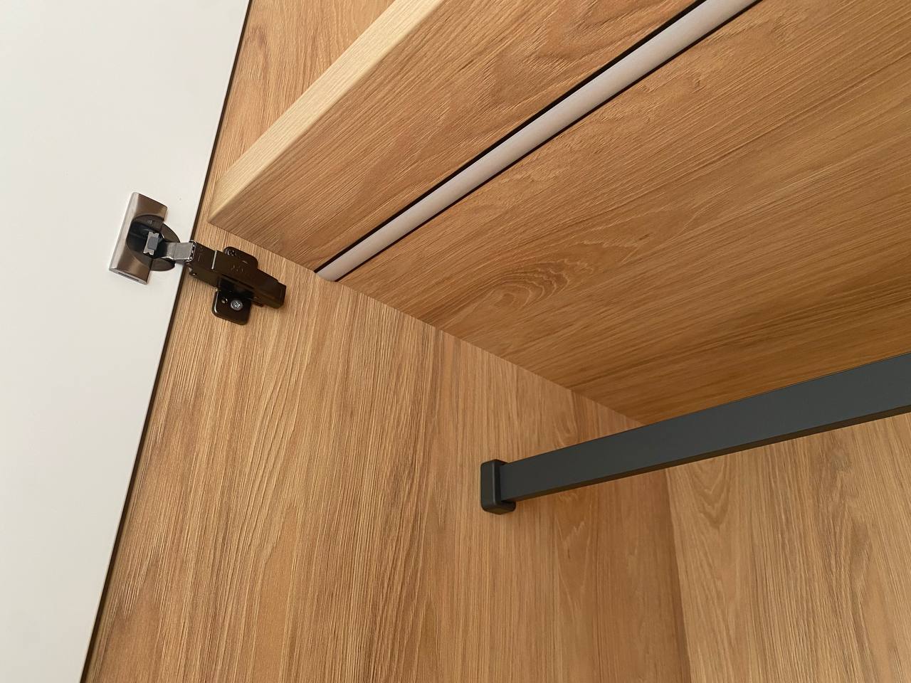 Встроенная LED-подсветка подчёркивает текстуру материалов и делает использование гардероба удобным в любое время суток.
